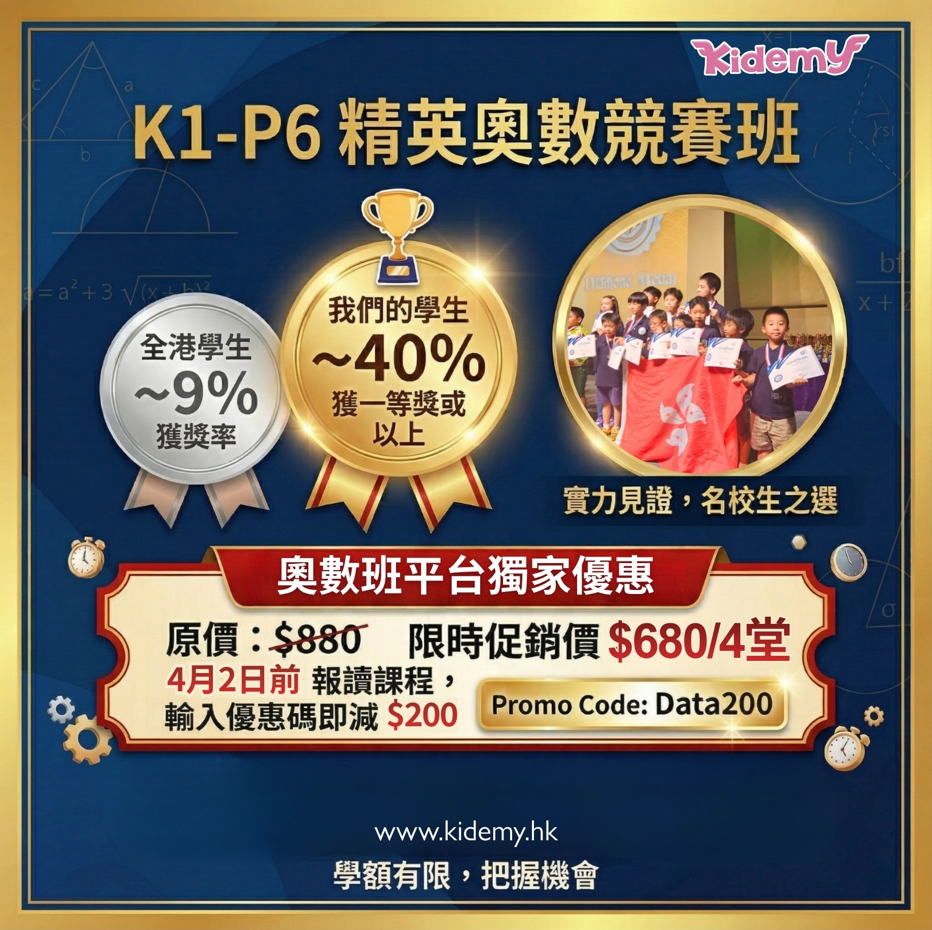 香港家長講起數學訓練,十個有九個都會糾結:到底應該報奧數,定係揀一條穩陣、日日練嘅路線?我自己做家長,亦見過唔少朋友為咗升小一面試、呈分試、甚至純粹想小朋友「唔怕數」,去搵合適嘅奧數課程試堂。
