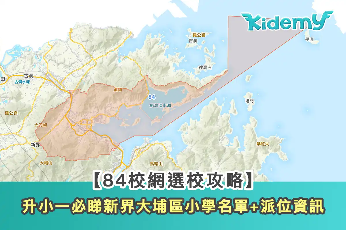 新界大埔區校網(又稱84校網),只有1個校網,包含了大埔50個地區,一共有19間官津小學為該校網服務。由於大埔區的人口密度較高,學額需求相對較大,裏面的地區名校一直都有超收率,家長們一定要精明地編排學校。