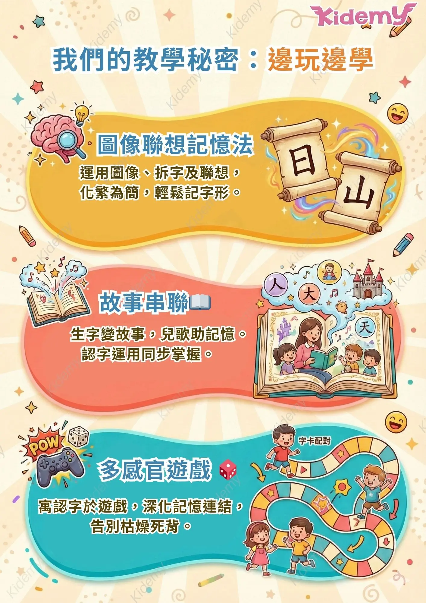 3 至 6 歲是幼兒語言發展及識字能力建立的重要階段。本1對1中文識字班課程以故事記憶法結合主題教學,配合由淺入深的學習進程,每堂因應小朋友能力學習約 5–8 個單字或詞語,幫助小朋友有效建立認字基礎,而非死記硬背。